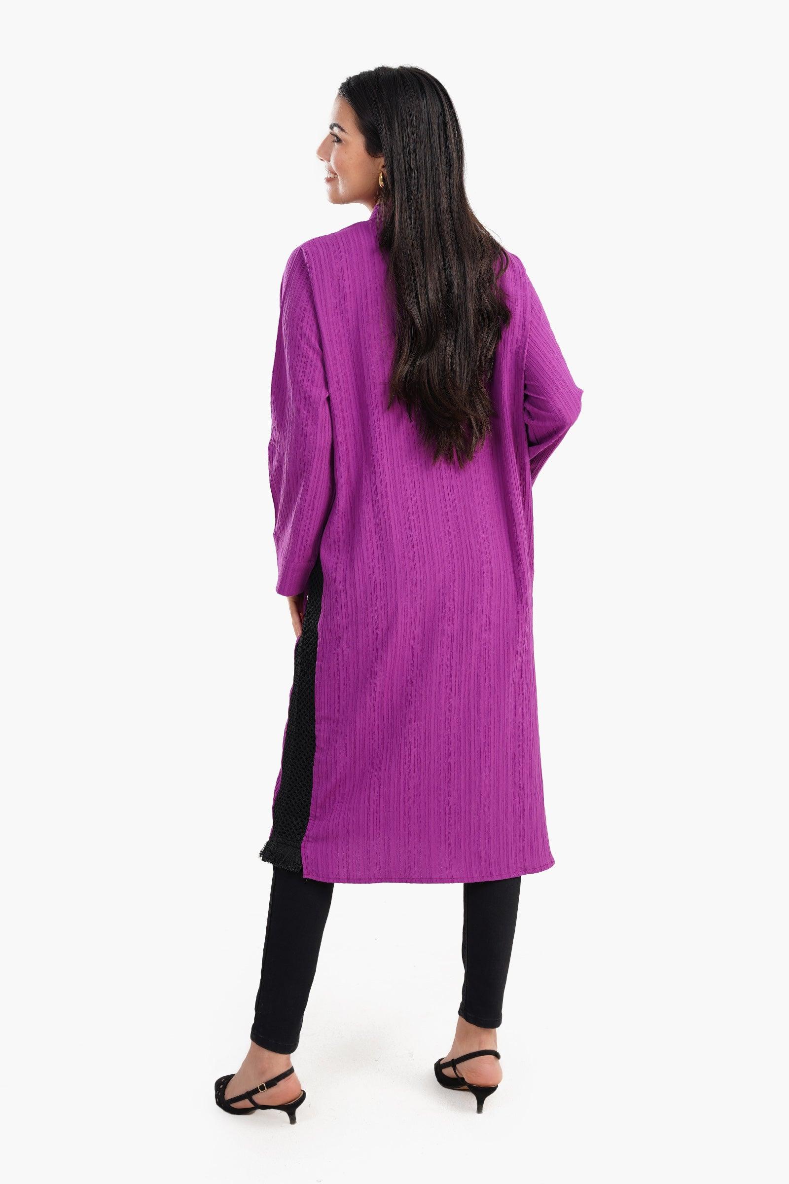 فستان بتصميم قميص مزين بالتريكو