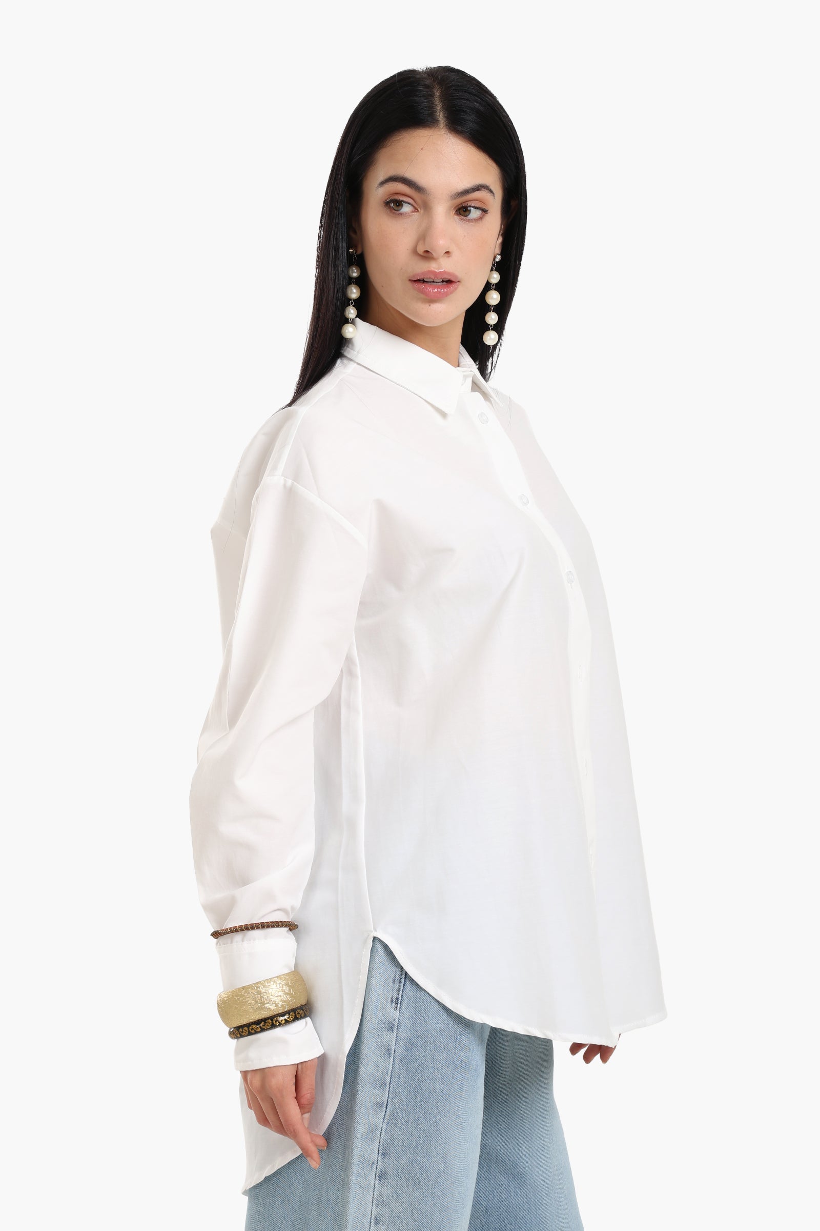 Designed for everyday elegance, this shirt is crafted from soft viscose with a breathable feel and fluid drape. Featuring a relaxed fit and a solid pattern, it boasts a collared neck and button-down closure for timeless appeal. The asymmetrical design and round hem add a modern edge, making it a stylish essential. Long sleeves complete the look, offering versatility across seasons. This easy-to-wear shirt blends simplicity with subtle statement.