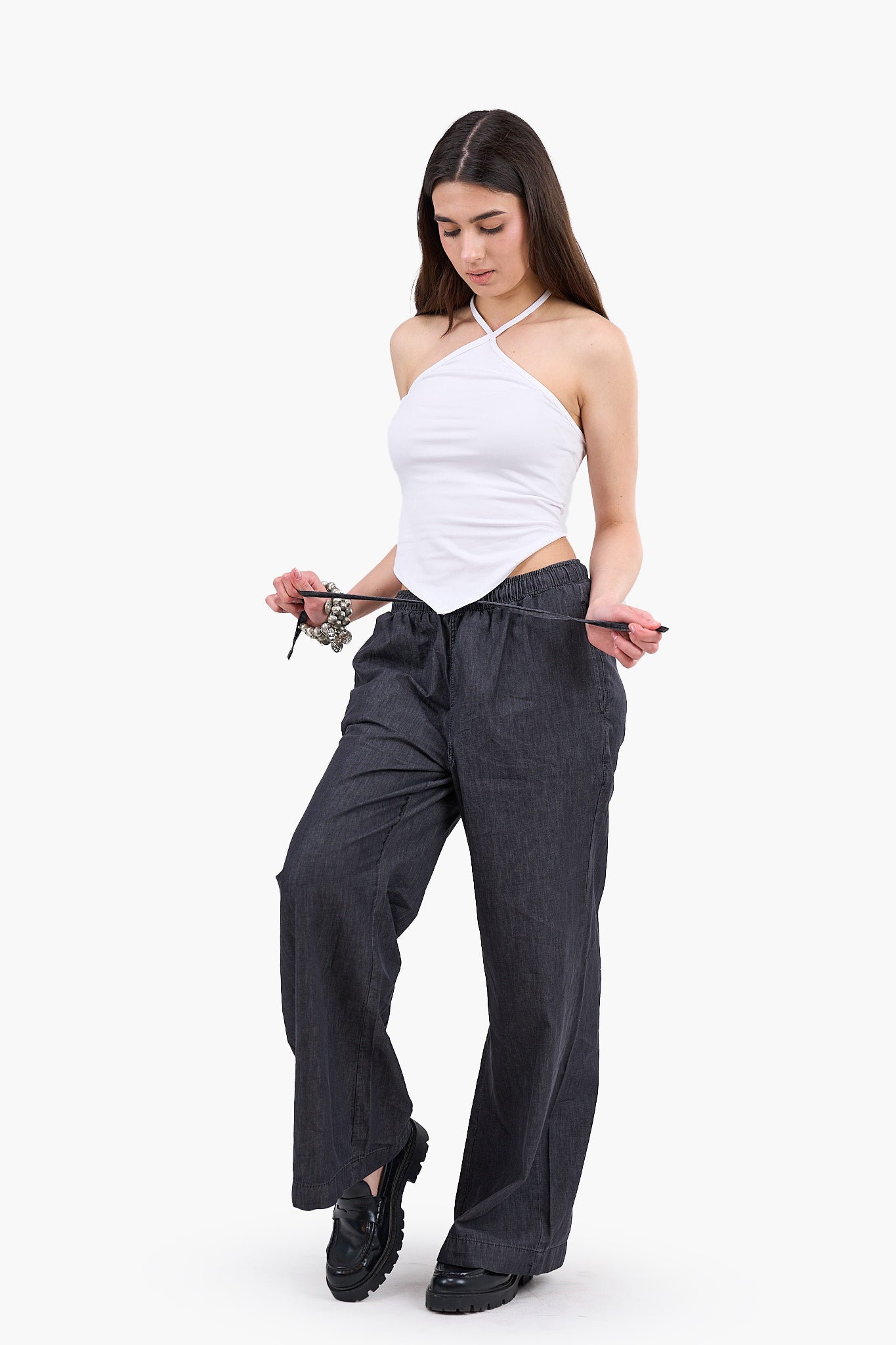 Turn heads with this Halter Neck Backless Slim Fit Top, designed for a bold and modern look. Made from smooth polyamide fabric, this top offers a flattering slim fit that hugs your curves while keeping things chic and comfortable. The halter neck adds an elegant touch, drawing attention to your shoulders and collarbones, while the backless design adds a daring and alluring element. The asymmetrical cut gives this top a unique, fashion-forward edge, making it perfect for both casual and semi-formal occasions. Sleeveless for those warmer days, this top is easy to wear and pairs beautifully with jeans, skirts, or tailored pants, giving you a versatile piece for your wardrobe.