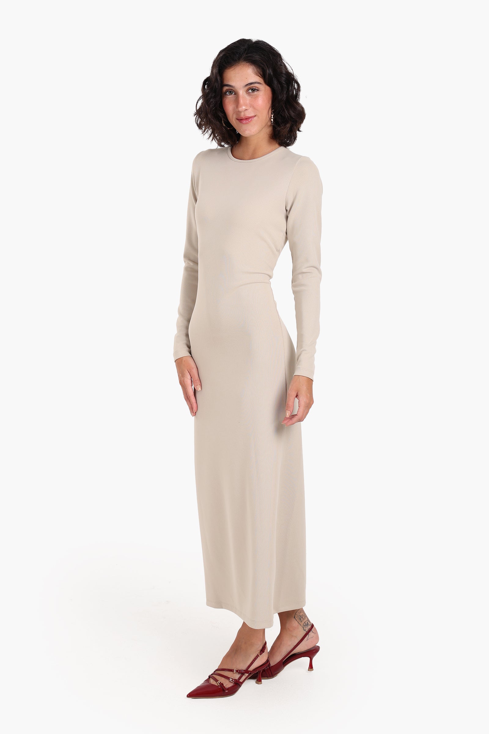 This sleek and sophisticated midi dress is made from a soft polyester fabric that offers both comfort and style. The slim fit accentuates your figure, while the solid pattern and round neck give it a timeless appeal. With long sleeves and a midi length, this dress is perfect for both casual and semi-formal occasions. The slip-on design makes it easy to wear, while the versatile style can be dressed up or down.
