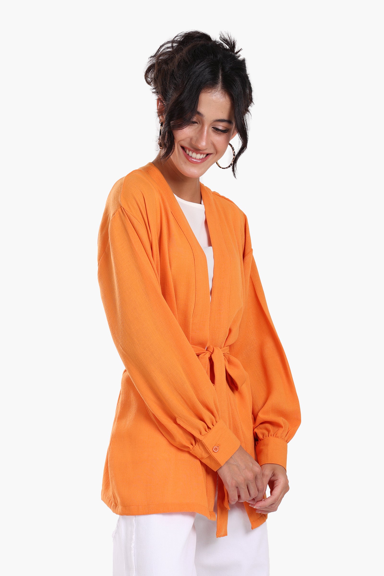 Add effortless elegance to your wardrobe with this versatile Tencel kimono. Designed in a regular fit with a flattering hip-length cut, it features an open neckline, long sleeves with buttoned cuffs, and a detachable belt for customizable styling. The soft, breathable fabric drapes beautifully, making it an easy-to-wear piece for layering over both casual and chic outfits. Perfect for adding a polished finish to your everyday look.