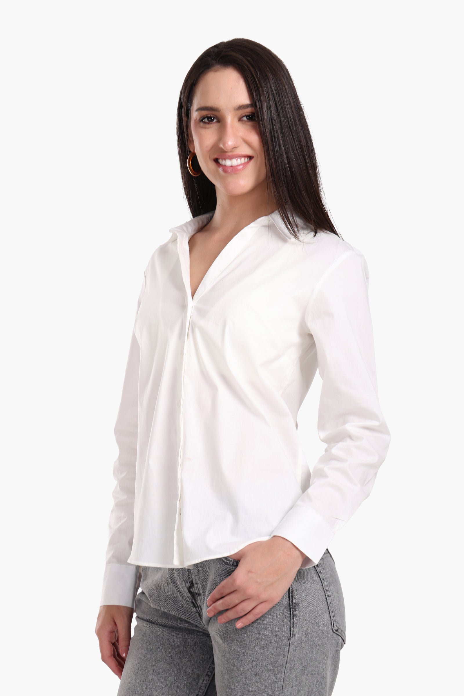 Elevate your everyday wardrobe with this classic Collared V-Neck Poplin Shirt, crafted from crisp, breathable poplin fabric. Featuring a solid pattern and regular fit, this shirt blends sophistication with ease. The collared V-neckline adds a modern twist to a timeless design, while the button-down closure and long sleeves make it a versatile staple for both work and casual outings. Designed to be easy to wear and effortlessly stylish.