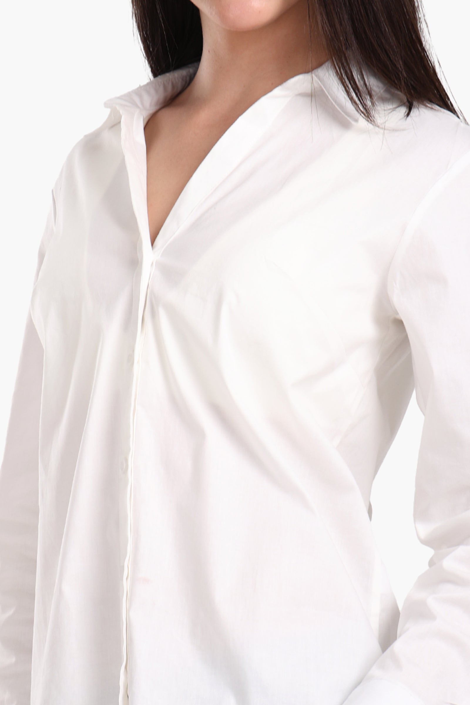 Collared V-Neck Poplin Shirt