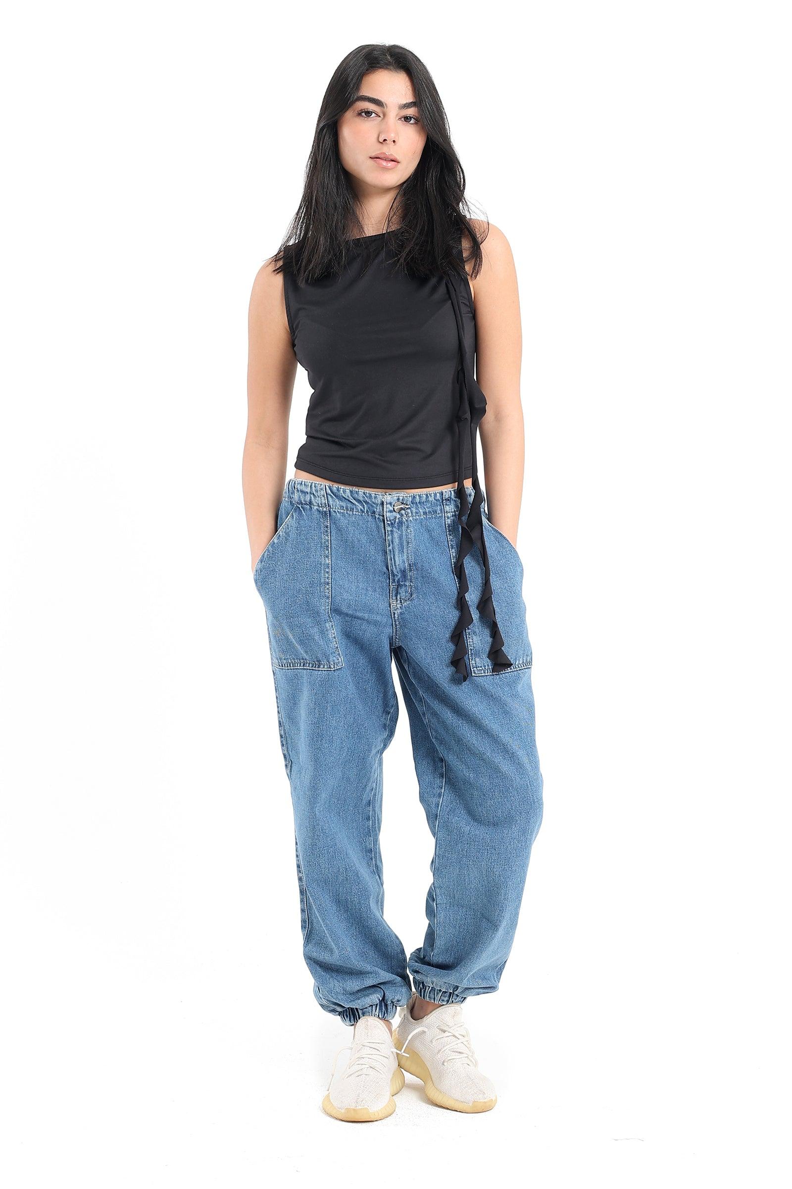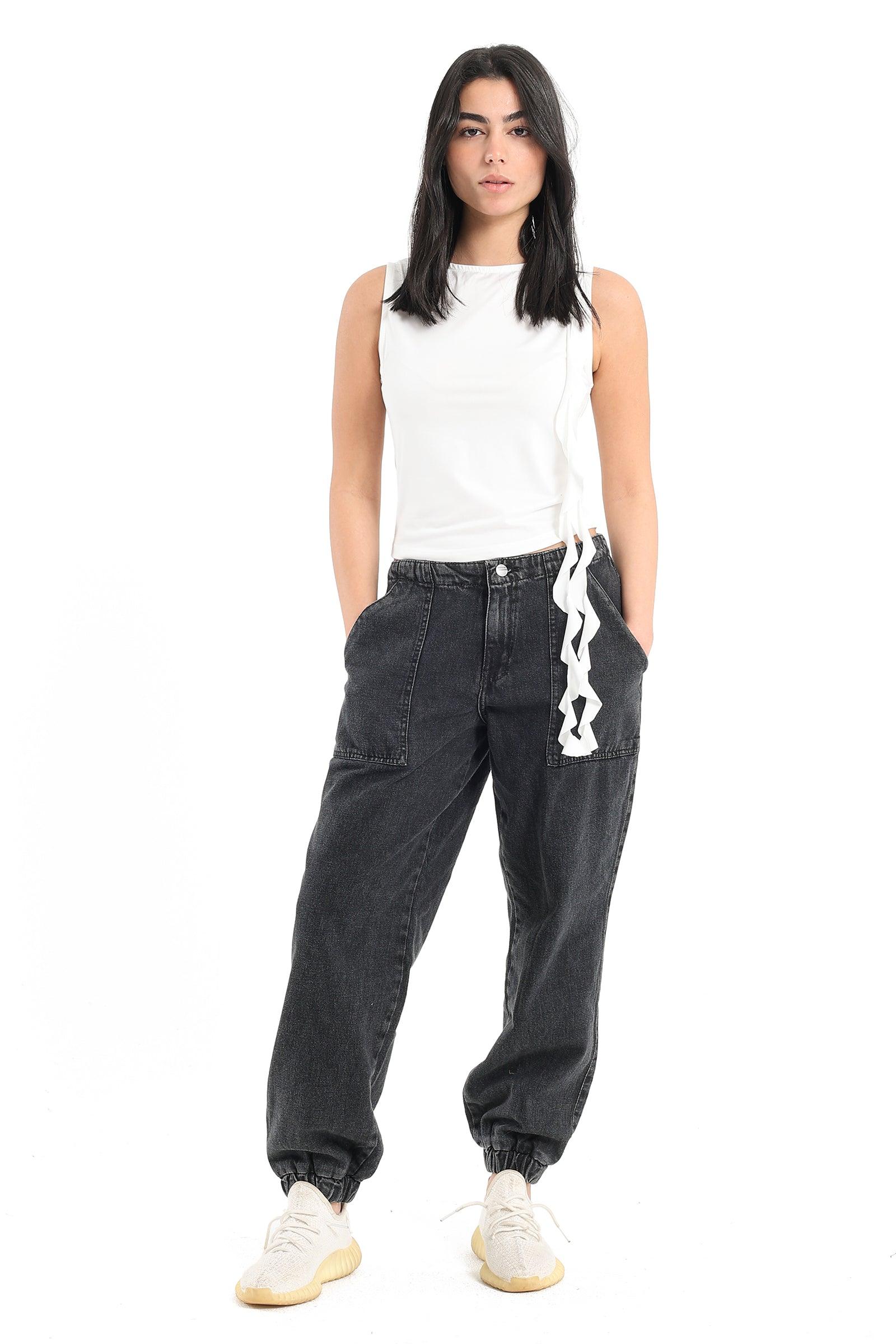 - Casual Chic: For a casual yet chic outfit, pair the One Side Sleeveless Ruffled Top with skinny jeans or denim shorts. Tuck in the top to showcase the asymmetrical design and create a defined waistline. The ruffles add a playful and feminine touch to the casual look. Complete the ensemble with sandals or sneakers and a crossbody bag for a stylish and comfortable outfit perfect for everyday wear.