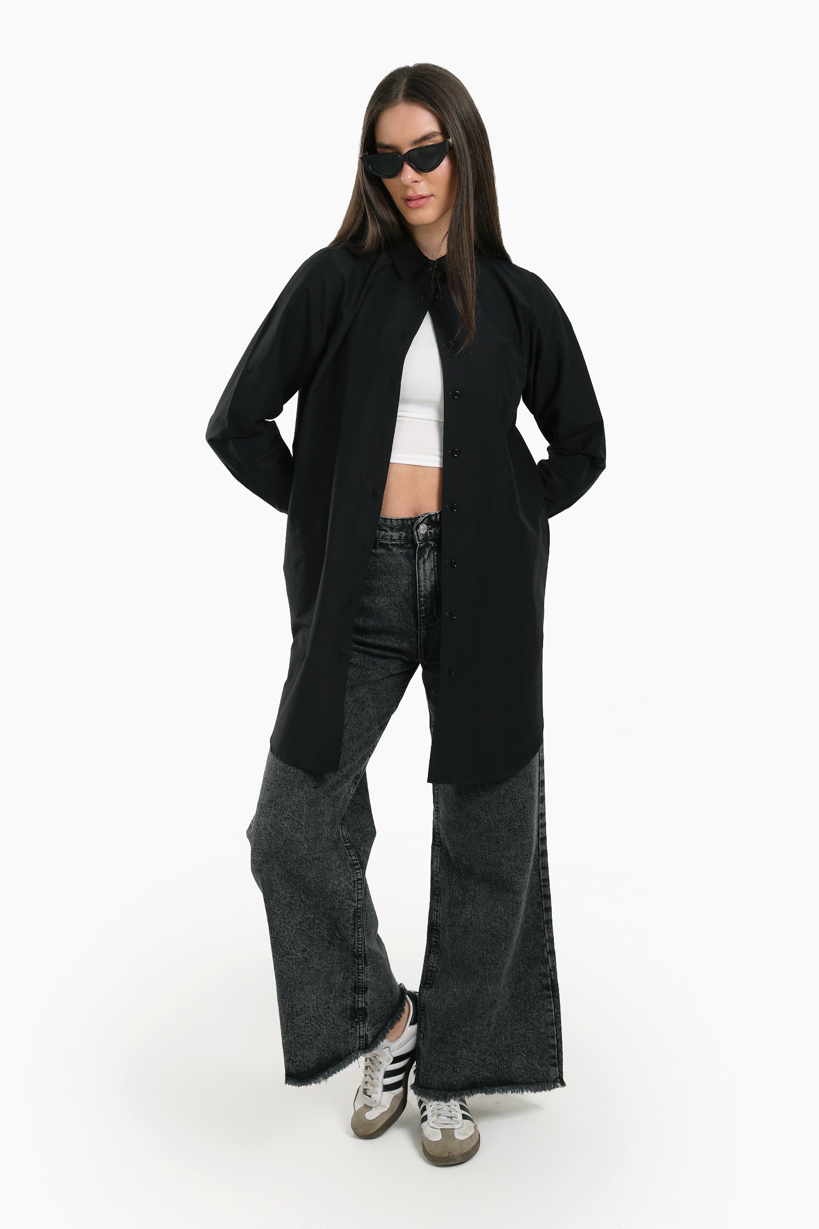 Timeless and versatile, this Round Hem Long Shirt is crafted from lightweight, breathable viscose for effortless all-day comfort. Designed in a solid pattern with a relaxed fit, it features a classic collared neck and button-down closure with a full placket, making it both polished and easygoing. The long sleeves offer added coverage, while the rounded hem brings a soft, flattering finish that works beautifully untucked or layered.