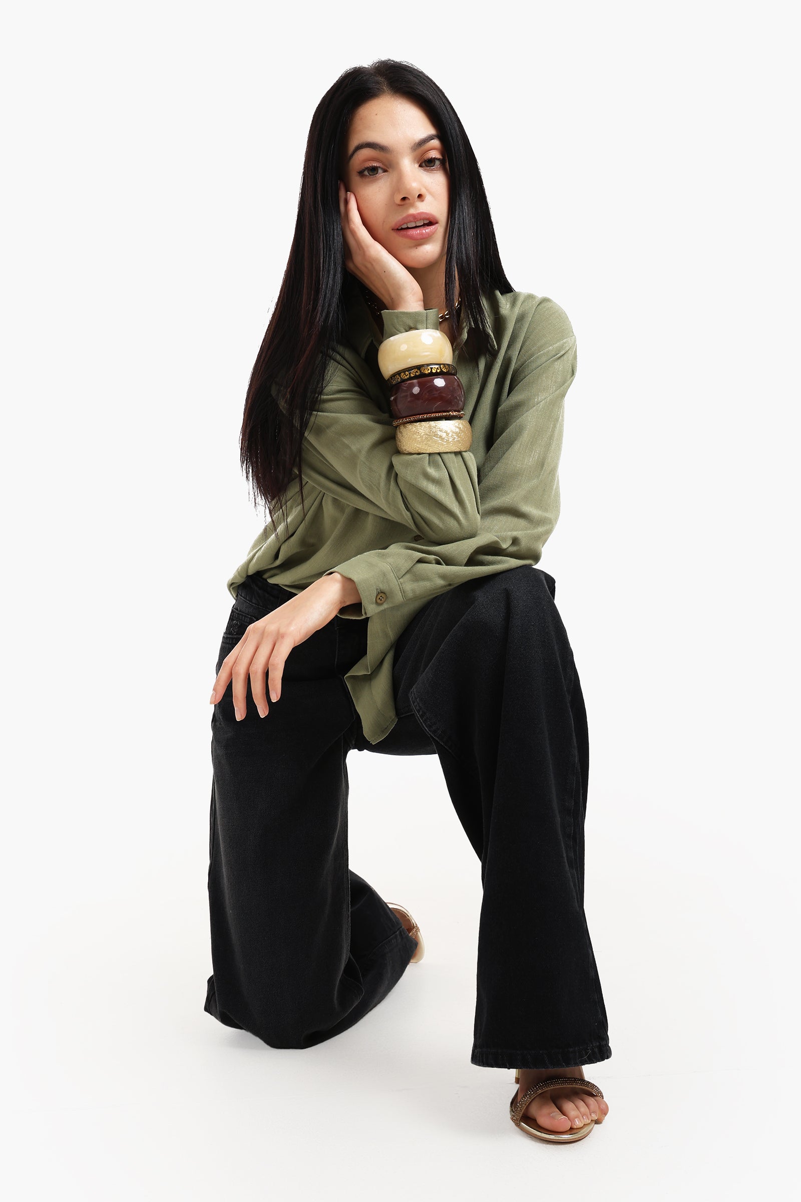 - Pair with a cropped cardigan or blouse to accentuate the high waist.