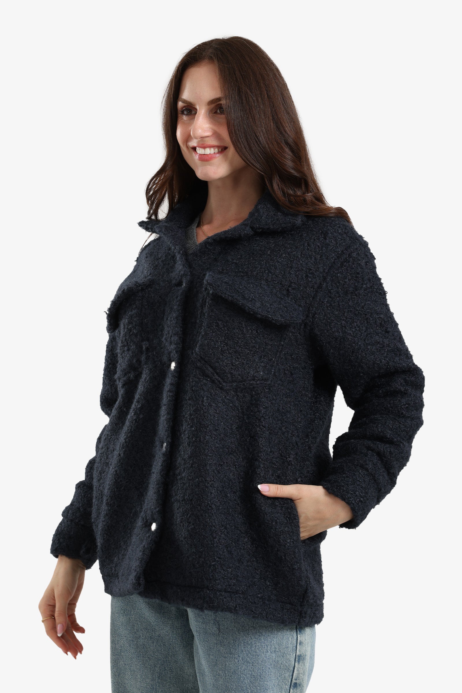 Crafted from a warm wool blend, this overshirt comes in a relaxed fit with a clean, plain design. It features a classic collar neck, long sleeves with buttoned cuffs, and a full button placket for easy wear. Finished with chest and side pockets, it blends casual comfort with practical details — perfect for layering in cooler weather.